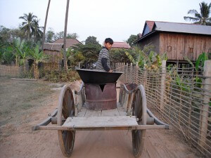 Visit of the Vat Ek temple of the XI century and traditional Khmer villages along the river. Lunch. In the afternoon, sightseeing on the small Bamboo train along the rice fields and visit a village specialised in rice production. Spend the night in Battambang. (B,L)- 30 km