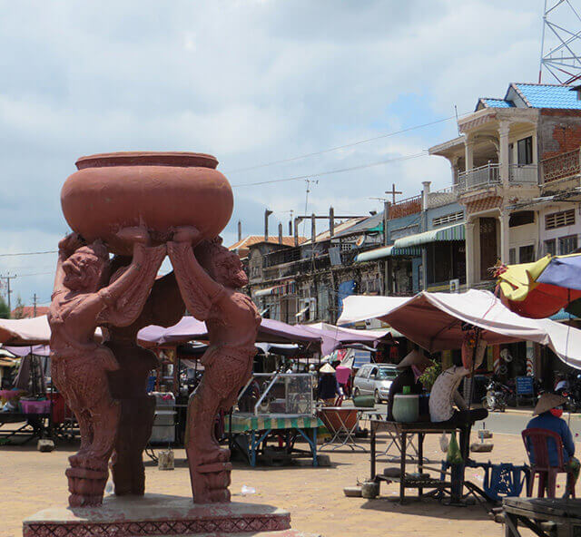 Transfer by public bus across the provinces of Kampong Chhnang and Pursat to reach Battambang. Lunch. After lunch, we bike up country and visit Phnom Banon, temple