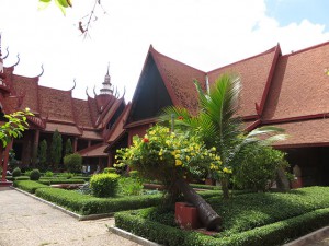 Visit to the National Museum and the Silver Pagoda. Sightseeing tour with cycle rickshaw of the markets and quays. Boat trip on the Mekong for sunset. Return to Hotel. (B)