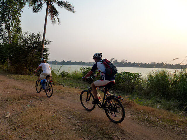 Today’s route follows Highway 5 for the first 55km, passing through numerous small villages and the occasional small town. As we reach the small town of Oudong we leave Highway 5 and cycle the 3km to Phnom Prah Reach Trap (commonly referred to as Oudong Mountain), once the capital of Cambodia. Here we leave our bikes and climb the 400+ steps, passing large stupa’s that house the remains of various kings, on route to the top where we can rest and take in the expansive, panoramic views. We will stop for lunch. After lunch we take delightful back roads to Phnom Penh – this is quintessential Cambodia, small villages with wooden houses on stilts, red dirt track roads and flat vivid green fields. We enter the capital. Phnom Penh is a city which succeeds in being lively in spite of its fading, crumbling character. It is true to say that Phnom Penh’s fortunes have been extremely varied over the past century but once again it is a lively city on the up. (B,L,-)